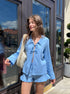 Жіночий лляний костюм із сорочкою без ґудзиків та шортами – стильна та універсальна річ на літо. Натуральна тканина дарує легкість, а мінімалістичний дизайн робить образ сучасним та невимушеним (100% льон)
