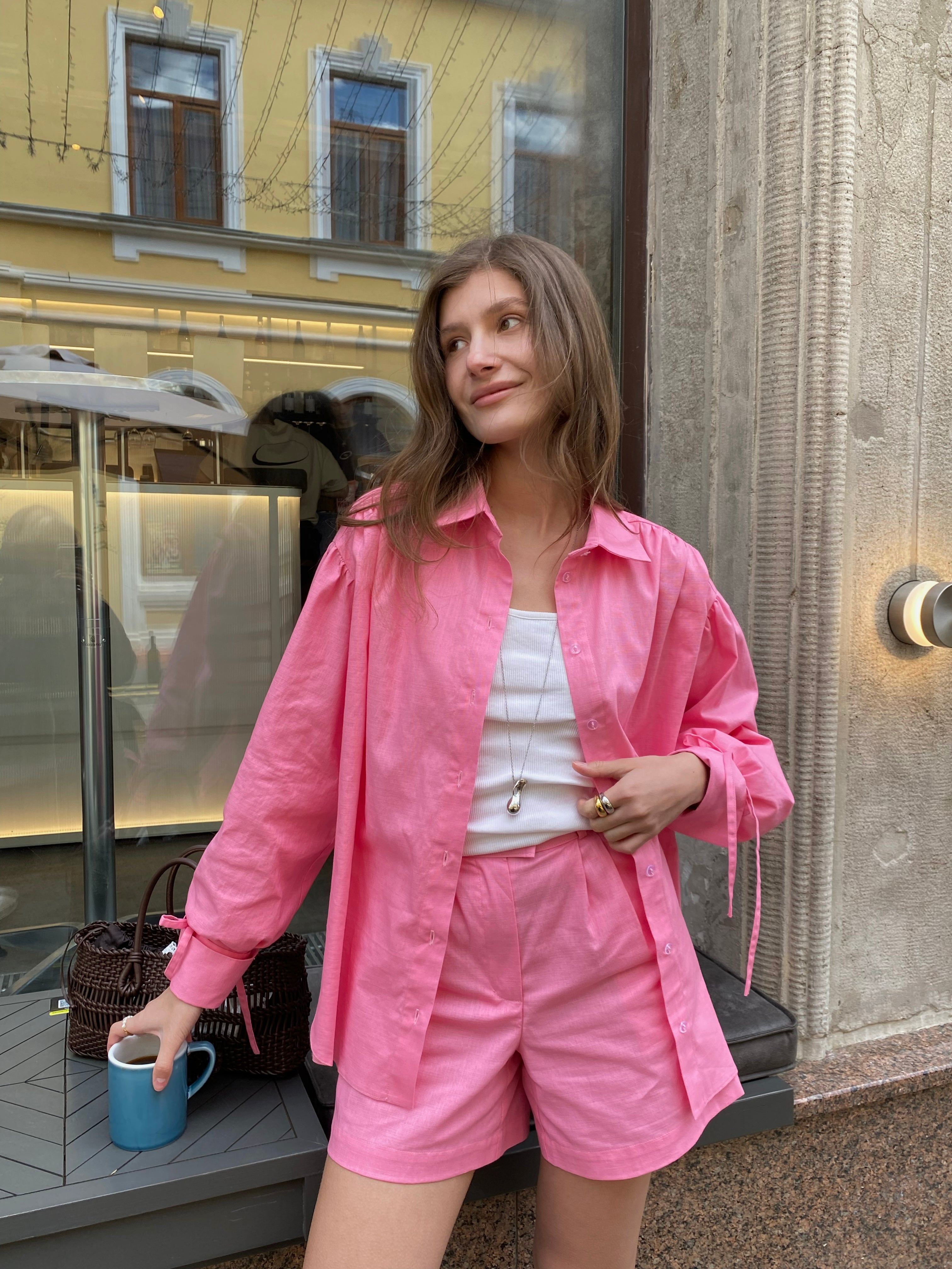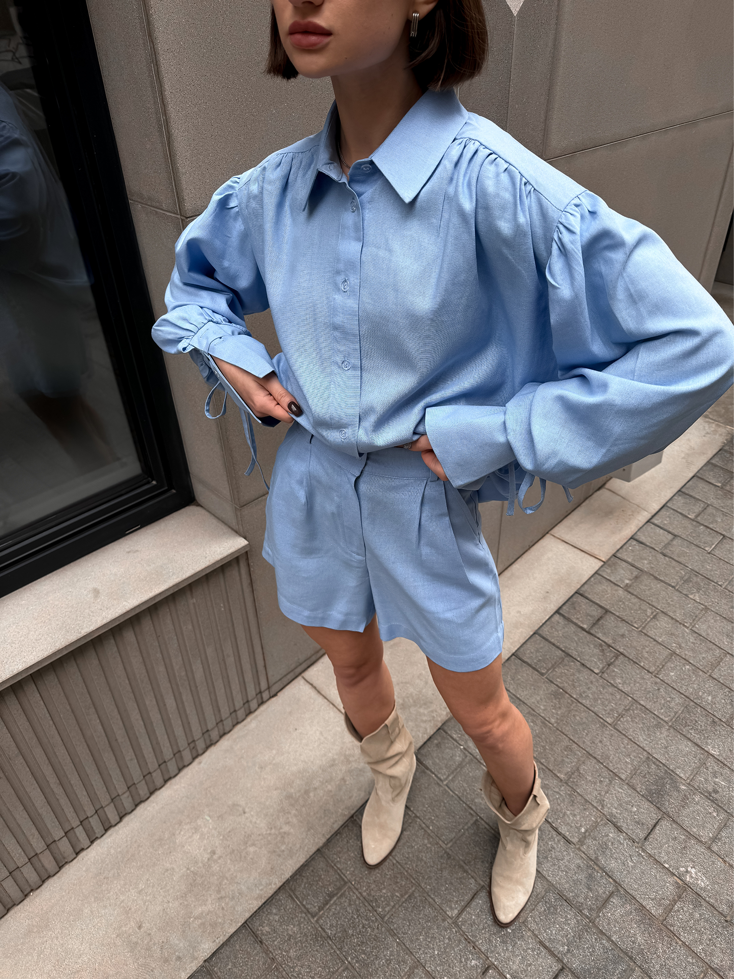 Жіночий лляний костюм із сорочкою та шортами – це тренд літа, що поєднує комфорт, стиль і натуральність. Легка, приємна до тіла тканина ідеальна для теплої погоди.
